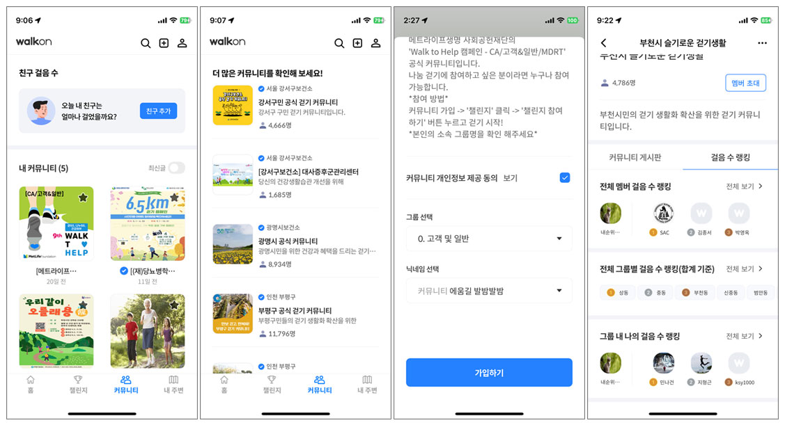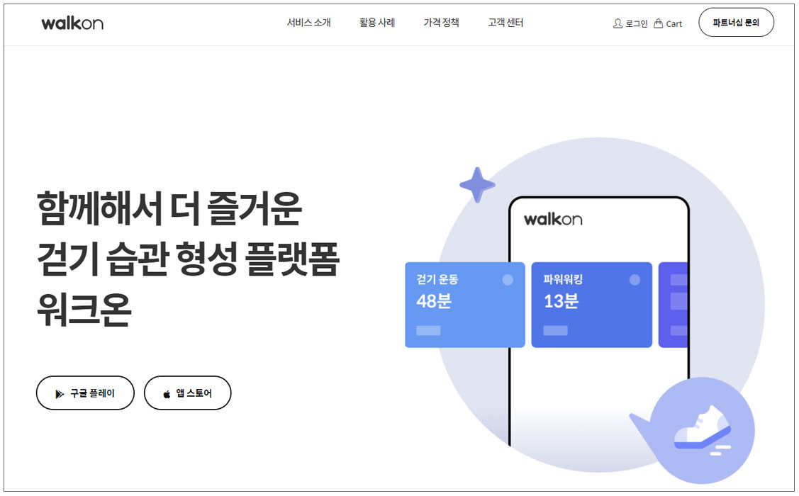 워크온은 시, 회사, 동아리 같은 단체에서 커뮤니티를 만들어 다양한 챌린지로 걷기와 좋은 생활습관을 형성할 수 있도록 도와주는 플랫폼이다.