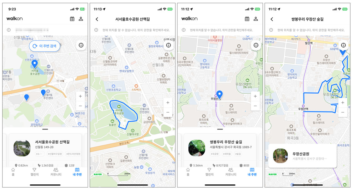 마지막 내 주변 메뉴는 근처에 있는 산책길, 둘레길을 확인할 수 있는 곳이다.