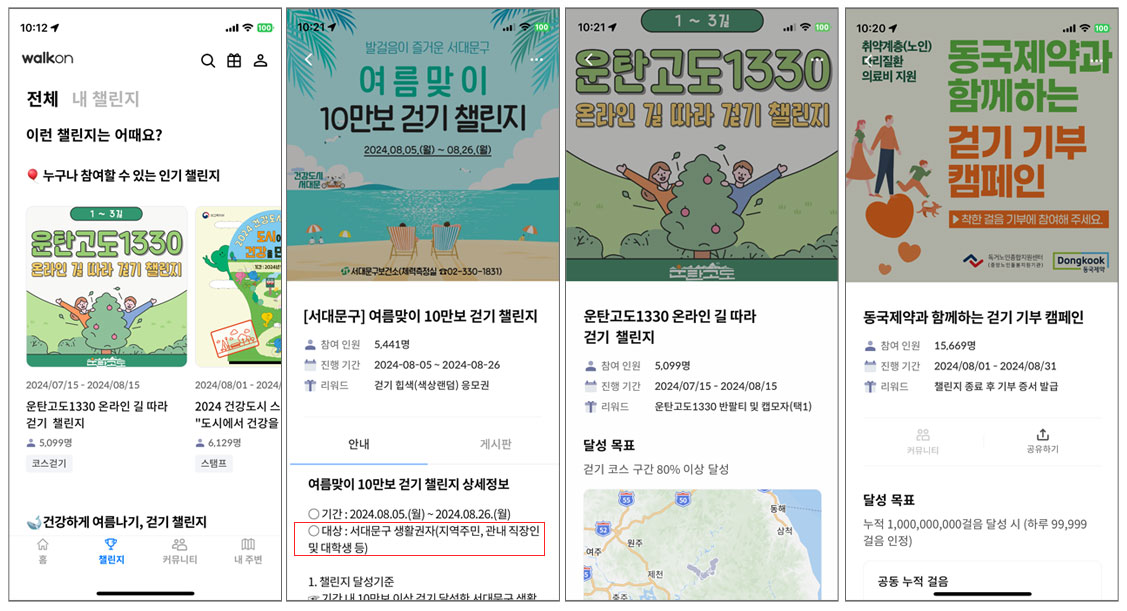 챌린지는 보통 동사무소, 보건소에서 주관하는 것이 많은데 이런 챌린지는 그 지역 거주자나 관내 직장인, 대학생 등 생활권자를 대상으로 하는 경우가 많다.