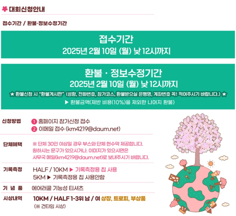 대회 일시 : 2025년 3월 9일 일요일 오전 9시 출발 (오전 8시 집결)
