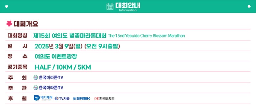 <제15회 여의도 벚꽃 마라톤 대회 참가신청 바로가기>